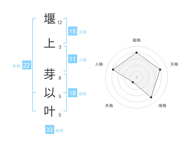 堰上 芽以叶さんを姓名の画数から五運を鑑定