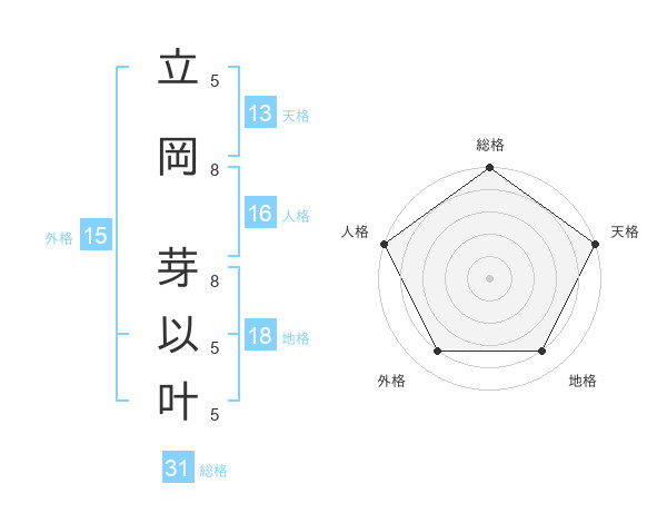 立岡 芽以叶さんを姓名の画数から五運を鑑定