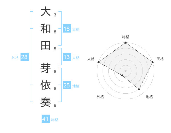 大和田 芽依奏さんの総格は41画の5点