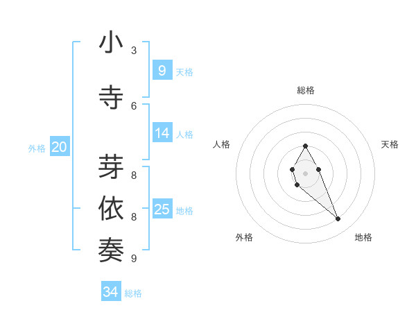 小寺 芽依奏さんを姓名の画数から五運を鑑定