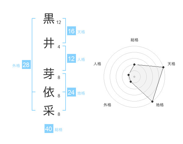 黒井 芽依采さんの外格は28画の1点!