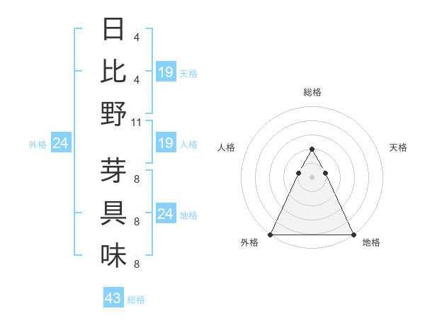 日比野 芽具味さんを姓名の画数から五運を鑑定