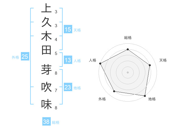 上久木田 芽吹味さんの総格は38画の4点!