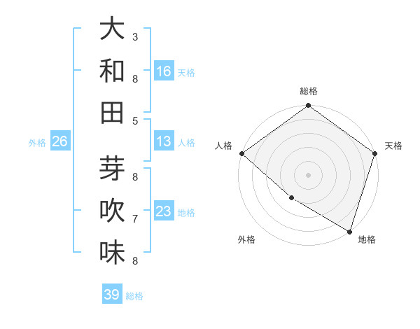 大和田 芽吹味さんを姓名の画数から五運を鑑定