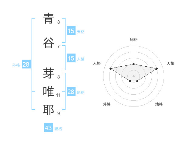 青谷 芽唯耶さんの天格は15画の4点!
