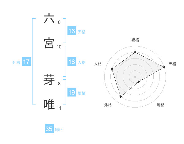 六宮 芽唯さんを姓名の画数から五運を鑑定