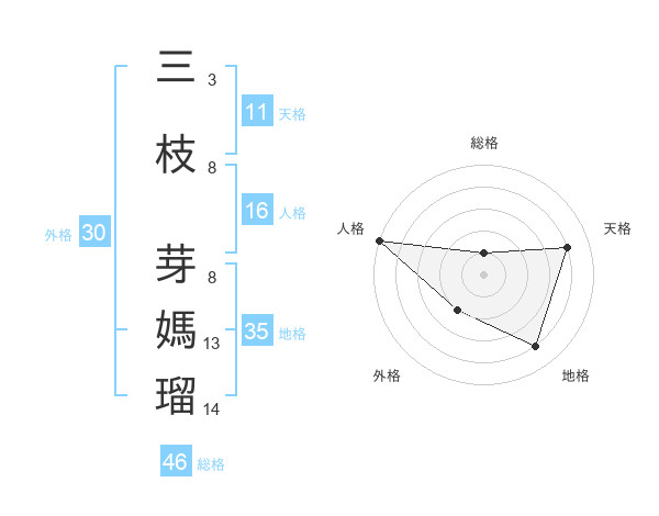 三枝 芽媽瑠さんを姓名の画数から五運を鑑定