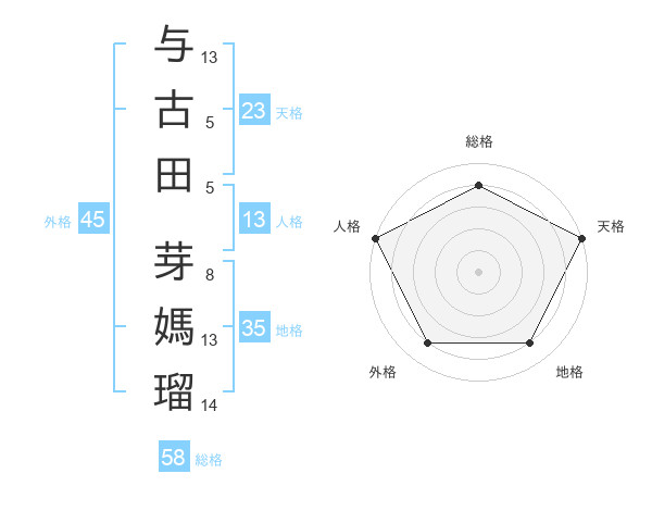 与古田 芽媽瑠さんの天格は23画の5点!
