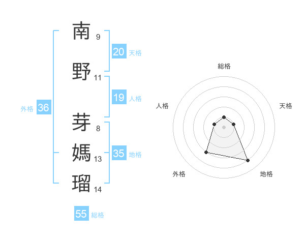 南野 芽媽瑠さんの天格は20画の1点!