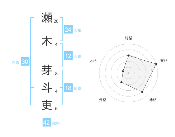 瀬木 芽斗吏さんを姓名の画数から五運を鑑定