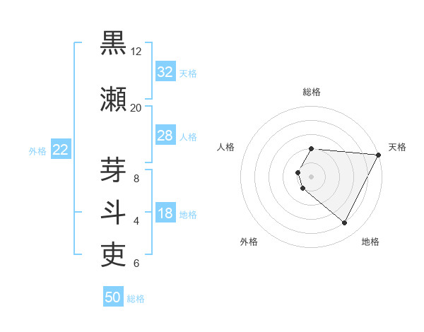 黒瀬 芽斗吏さんの総格は50画の2点!