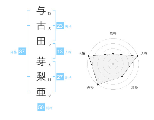 与古田 芽梨亜さんを姓名の画数から五運を鑑定