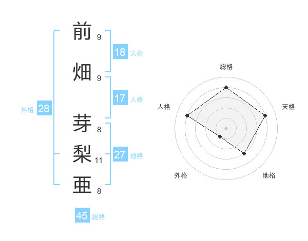 前畑 芽梨亜さんを姓名の画数から五運を鑑定