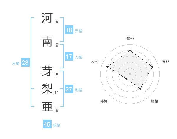 河南 芽梨亜さんの総格は45画の4点!