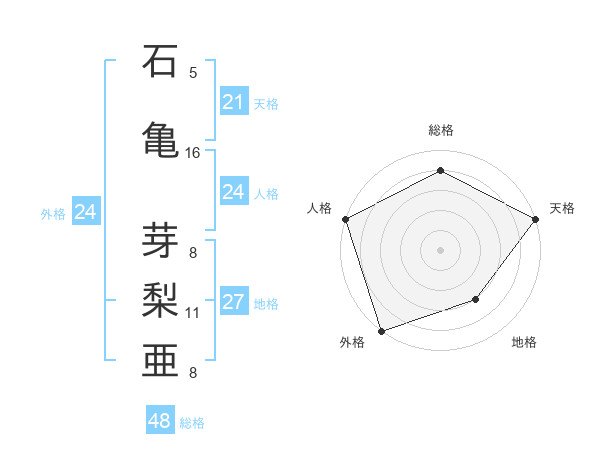 石亀 芽梨亜さんを姓名の画数から五運を鑑定