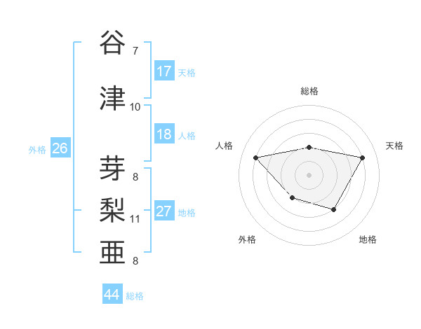 谷津 芽梨亜さんを姓名の画数から五運を鑑定