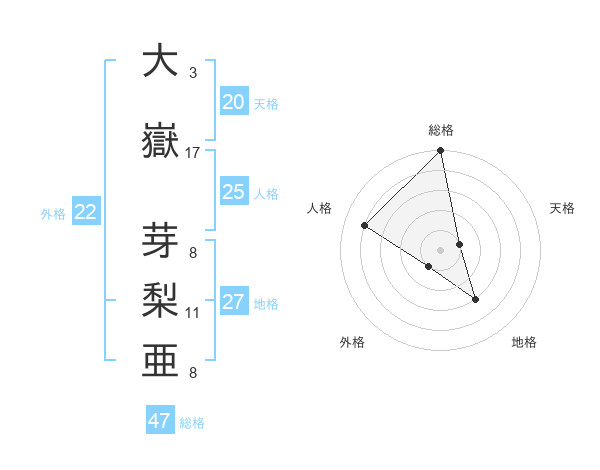 大嶽 芽梨亜さんを姓名の画数から五運を鑑定