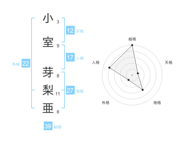 小室 芽梨亜さんを姓名の画数から五運を鑑定