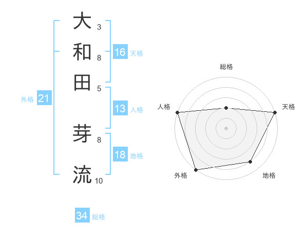 大和田 芽流さんの天格は16画の5点!