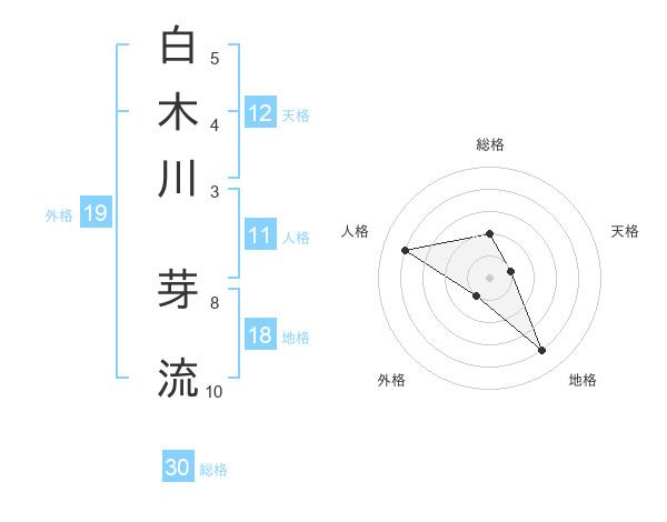 白木川 芽流さんの総格は30画の2点