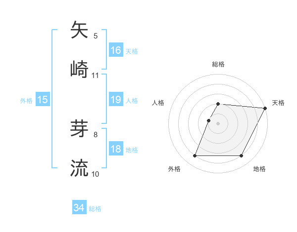 矢崎 芽流さんを姓名の画数から五運を鑑定
