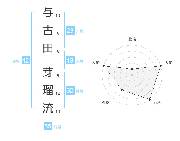 与古田 芽瑠流さんを姓名の画数から五運を鑑定