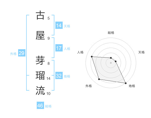 古屋 芽瑠流さんの総格は46画の1点!