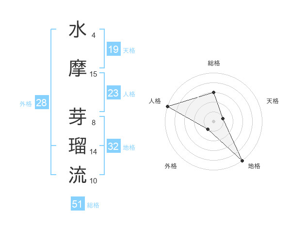 水摩 芽瑠流さんを姓名の画数から五運を鑑定