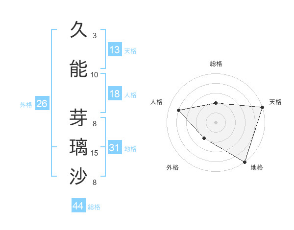 久能 芽璃沙さんの地格は31画の5点!