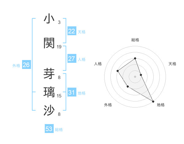 小関 芽璃沙さんの総格は53画の3点!