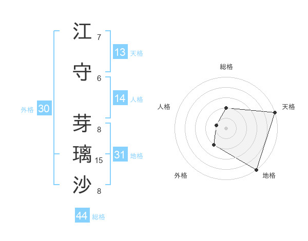 江守 芽璃沙さんの総格は44画の2点!