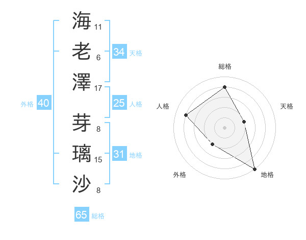 海老澤 芽璃沙さんの総格は65画の4点!