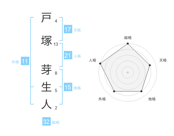 戸塚 芽生人さんの総格は32画の5点!