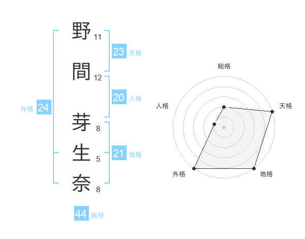 野間 芽生奈さんの外格は24画の5点!