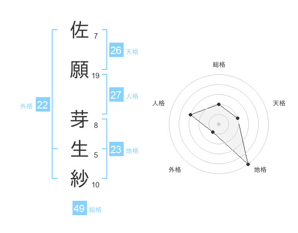 佐願 芽生紗さんを姓名の画数から五運を鑑定