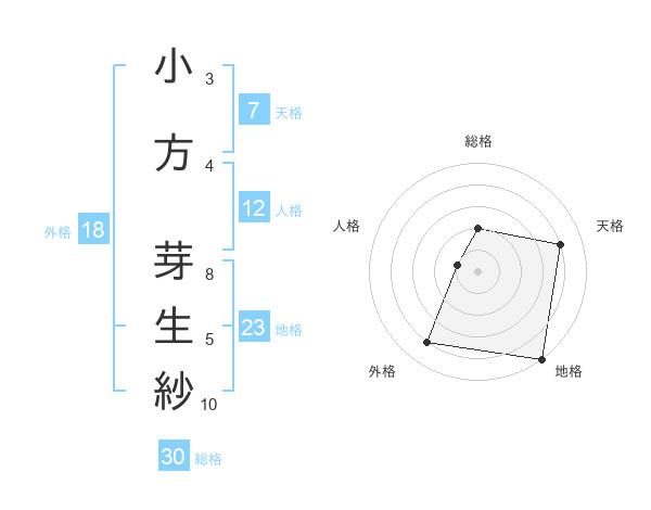 小方 芽生紗さんを姓名の画数から五運を鑑定