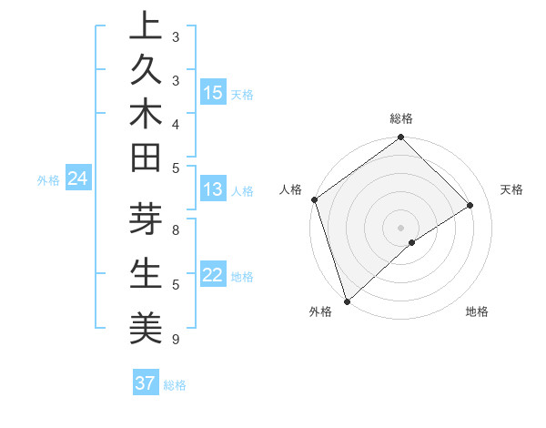 上久木田 芽生美さんを姓名の画数から五運を鑑定