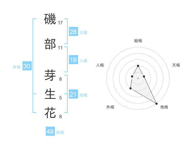 磯部 芽生花さんの総格は49画の2点!