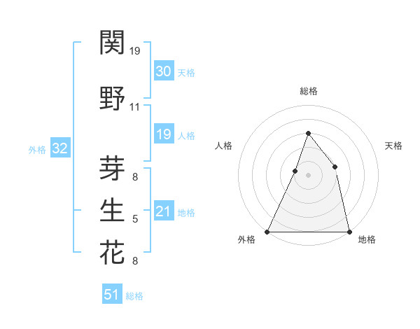 関野 芽生花さんの総格は51画の3点!