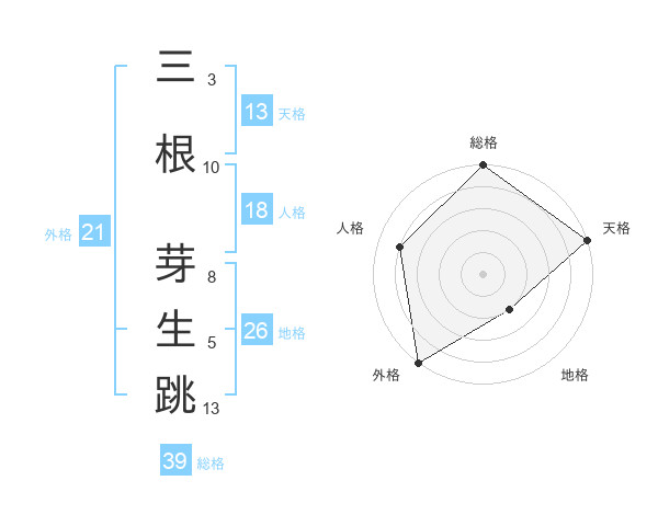 三根 芽生跳さんを姓名の画数から五運を鑑定