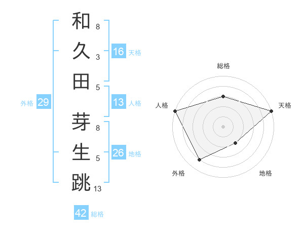 和久田 芽生跳さんの総格は42画の3点!