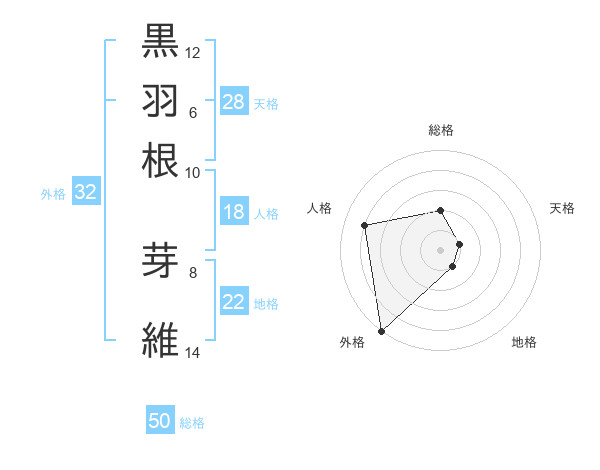 黒羽根 芽維さんを姓名の画数から五運を鑑定