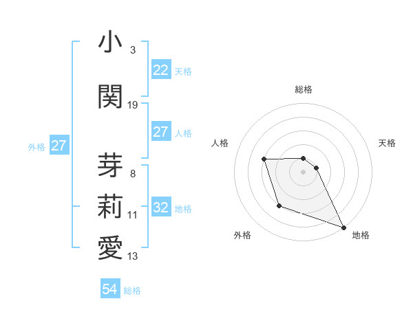 小関 芽莉愛さんを姓名の画数から五運を鑑定
