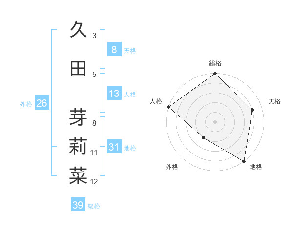 久田 芽莉菜さんを姓名の画数から五運を鑑定