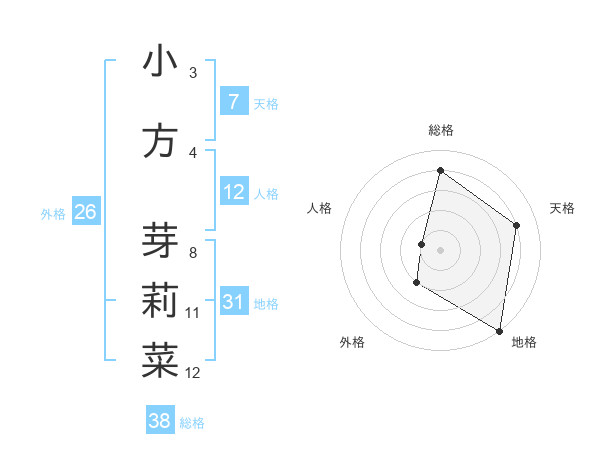 小方 芽莉菜さんを姓名の画数から五運を鑑定