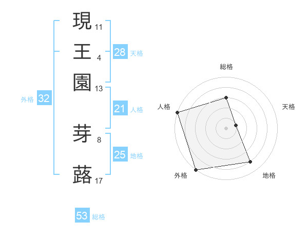 現王園 芽蕗さんを姓名の画数から五運を鑑定