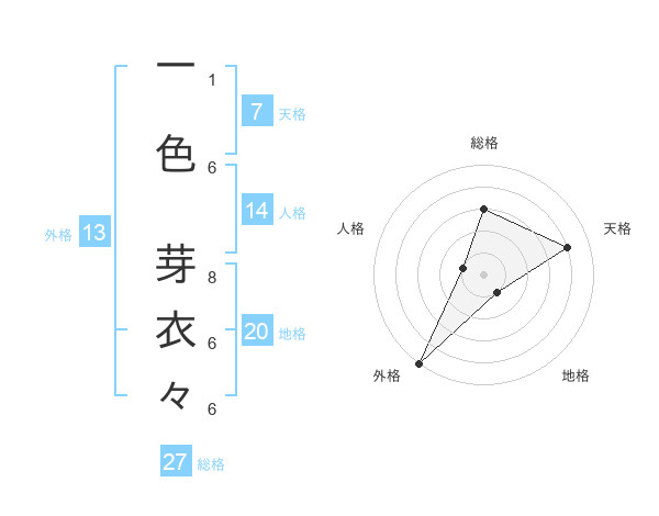 一色 芽衣々さんを姓名の画数から五運を鑑定