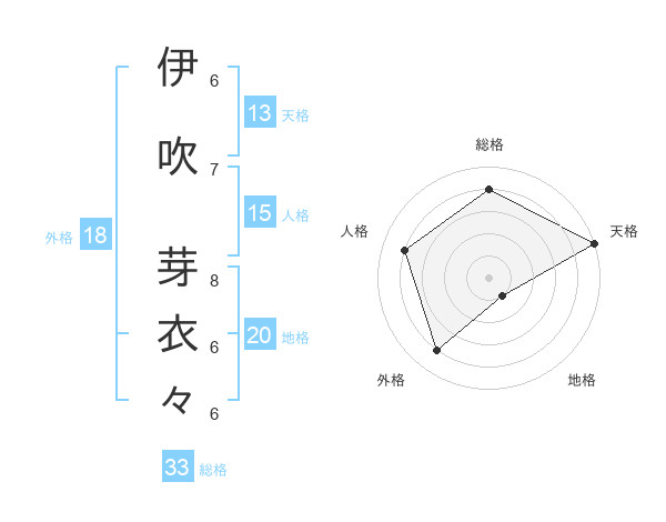 伊吹 芽衣々さんを姓名の画数から五運を鑑定