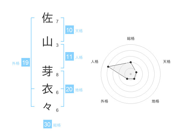 佐山 芽衣々さんを姓名の画数から五運を鑑定