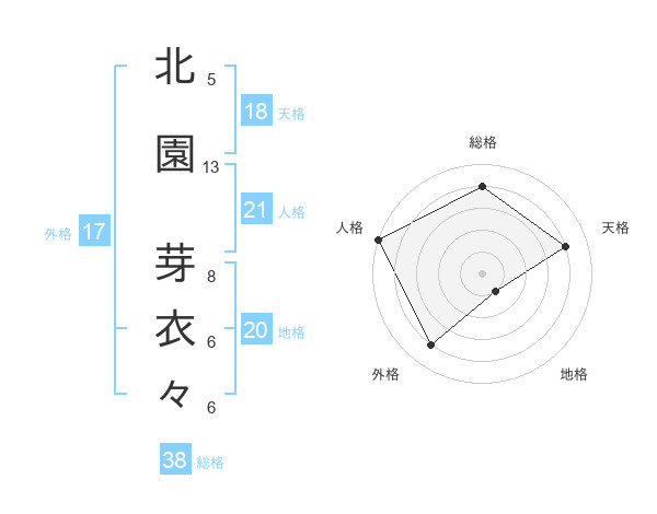 北園 芽衣々さんの天格は18画の4点!